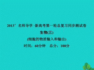 2013名师导学名师导学新高考第一轮总复习同步测试卷新高考第一轮总复习同步测试卷生物生物(三三)(细胞的物质输入和输出细胞的物质输入和输出)时间:时间:60分钟总分:分钟总分:100分分一、选择题(每小题3分,共48分)1将紫色洋葱鳞片叶表皮细胞将紫色洋葱鳞片叶表皮细胞浸润在浸润在0.3g/mL的蔗糖溶液中,的蔗糖溶液中,1分钟后进行显微观察,结果见分钟后进行显微观察,结果见右图。下列叙述错误的是右图。下列叙述错误的是( )A图中图中L是细胞壁,是细胞壁,M是液泡,是液泡,N是细胞质是细胞质B将视野中的细胞浸润在清水中,原生质体会逐渐复原将视野中的细胞浸润在清水中,原生质体会逐渐复原C实验说明细胞膜与细胞壁在物质透过性上存在显著差实验说明细胞膜与细胞壁在物质透过性上存在显著差异异D洋葱根尖分生区细胞不宜作为该实验的实验材料洋葱根尖分生区细胞不宜作为该实验的实验材料C2下图能够表示洋葱表皮细胞在质壁分离及其复下图能够表示洋葱表皮细胞在质壁分离及其复原过程中,液泡体积变化的是原过程中,液泡体积变化的是 ( )B3用洋葱鳞片叶表皮制备用洋葱鳞片叶表皮制备“观察细胞质壁分离实验观察细胞质壁分离实验”的的临时装片,观察细胞的变化。下列有关叙述不正确的是临时装片,观察细胞的变化。下列有关叙述不正确的是 ( )A细胞壁与原生质层的通透性及伸缩性均不同细胞壁与原生质层的通透性及伸缩性均不同B在盖玻片一侧滴入清水,细胞吸水膨胀但不会破裂在盖玻片一侧滴入清水,细胞吸水膨胀但不会破裂C用不同浓度的硝酸钾溶液处理细胞后,均能观察到质用不同浓度的硝酸钾溶液处理细胞后,均能观察到质壁分离并自动复原现象壁分离并自动复原现象D当质壁分离复原后,细胞仍具正常生理功能当质壁分离复原后,细胞仍具正常生理功能C4某种细胞,对某种细胞,对C6H12O6的吸收方式是协助扩散,但的吸收方式是协助扩散,但是在一定条件下经特殊的诱变处理后,丧失了吸收是在一定条件下经特殊的诱变处理后,丧失了吸收C6H12O6的功能,并且这种特性在细胞多次分裂后仍能的功能,并且这种特性在细胞多次分裂后仍能保持,以下分析正确的是保持,以下分析正确的是( )A细胞对细胞对C6H12O6的需求发生变化的需求发生变化B细胞膜上的载体蛋白缺失或结构发生变化细胞膜上的载体蛋白缺失或结构发生变化C细胞壁的结构发生变化,导致通透性降低细胞壁的结构发生变化,导致通透性降低D诱变处理破坏了细胞中催化诱变处理破坏了细胞中催化ATP合成的相关酶系合成的相关酶系【解析解析】据题意,该细胞多次分裂后仍然保持这种特性,据题意,该细胞多次分裂后仍然保持这种特性,说明使遗传物质发生了变化,影响载体蛋白形成或是载说明使遗传物质发生了变化,影响载体蛋白形成或是载体蛋白结构发生了变化。所以体蛋白结构发生了变化。所以B正确。正确。B5下列关于细胞膜功能的表述中,正确的是下列关于细胞膜功能的表述中,正确的是( )控制物质跨膜的选择性运输,包括代谢底物的输入与控制物质跨膜的选择性运输,包括代谢底物的输入与代谢产物的排出代谢产物的排出提供细胞识别位点,并完成细胞内外提供细胞识别位点,并完成细胞内外信息的跨膜传递信息的跨膜传递原核细胞的细胞膜为多种酶提供了附原核细胞的细胞膜为多种酶提供了附着位点着位点 参与细胞与细胞、细胞膜与基质之间的连接参与细胞与细胞、细胞膜与基质之间的连接参与形成具有不同功能的细胞表面特化结构参与形成具有不同功能的细胞表面特化结构A BC DD6下列关于生物膜结构和功能的叙述,正确的是下列关于生物膜结构和功能的叙述,正确的是( )A细胞膜上的受体是细胞间信息交流所必需的结构细胞膜上的受体是细胞间信息交流所必需的结构B兴奋在神经纤维上传导和在神经元间传递时,生物兴奋在神经纤维上传导和在神经元间传递时,生物膜发生的变化是不同的膜发生的变化是不同的C在生长激素的合成和分泌过程中,生物膜只发生结在生长激素的合成和分泌过程中,生物膜只发生结构上的联系构上的联系D核膜上的核孔可以让蛋白质和核膜上的核孔可以让蛋白质和RNA自由进出自由进出B7下列有关生物膜的叙述,正确的是下列有关生物膜的叙述,正确的是( )A参与细胞膜组成的脂质只有磷脂参与细胞膜组成的脂质只有磷脂B用蛋白酶处理生物膜可改变其组成,不改变其通透用蛋白酶处理生物膜可改变其组成,不改变其通透性性C抗体的合成和分泌过程都与生物膜有关抗体的合成和分泌过程都与生物膜有关D小鼠细胞与人体细胞的细胞膜在一定条件下能够发小鼠细胞与人体细胞的细胞膜在一定条件下能够发生融合生融合D8下图用不同形式表示了浆细胞下图用不同形式表示了浆细胞(能分泌抗体的淋巴细能分泌抗体的淋巴细胞胞)合成、分泌抗体过程中有关生物膜面积的变化,下列合成、分泌抗体过程中有关生物膜面积的变化,下列对数字和字母所示结构的判断,正确的是对数字和字母所示结构的判断,正确的是( )Ab内质网,内质网,c细胞膜,细胞膜,a高尔基体高尔基体Ba内质网,内质网,c细胞膜,细胞膜,b高尔基体高尔基体Cc高尔基体,高尔基体,b内质网,内质网,a细胞膜细胞膜Da核膜,核膜,b高尔基体,高尔基体,c内质网内质网B9组成生物体的蛋白质大