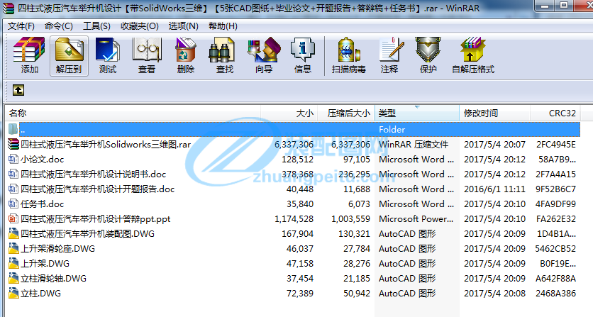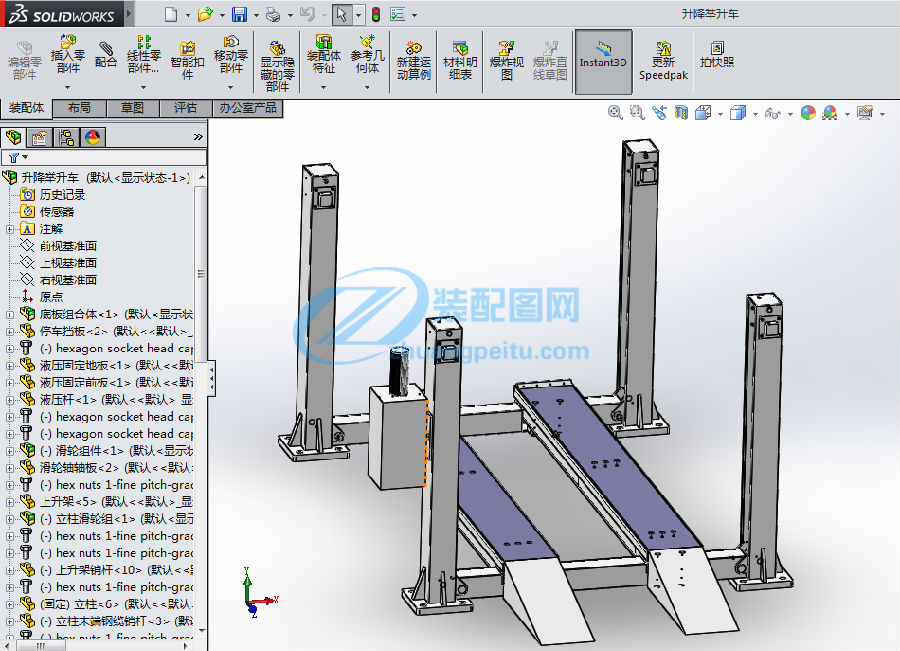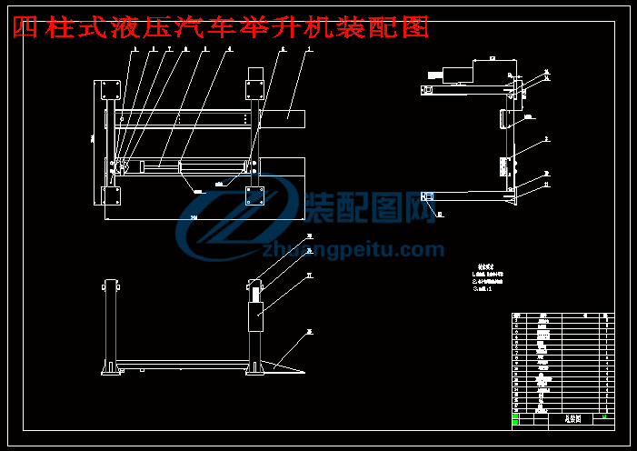四柱式液压汽车举升机设计【带SolidWorks三维】【5张CAD图纸+毕业论文+开题报告+答辩稿+任务书】